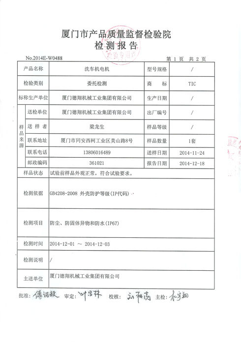 質(zhì)量監(jiān)督檢測(cè)報(bào)告-洗車機(jī)電機(jī)
